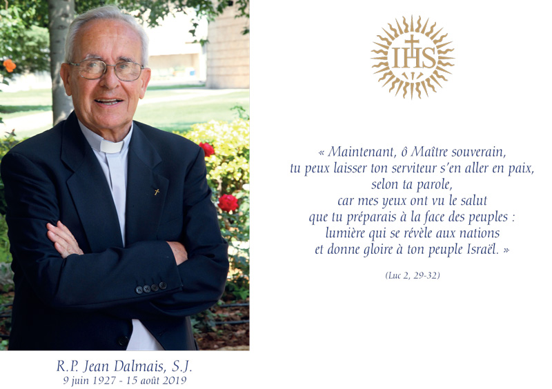 Faut-il rappeler l’engagement du P. Dalmais auprès de nombreuses générations au Collège ou encore son engagement pour notre pays durant les années les plus difficiles de la guerre ? Sa présence bienveillante et assidue auprès des mouvements qu’il a accompagnés ?