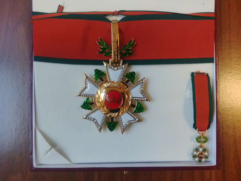 En signe de cette reconnaissance, Son Excellence Monsieur le Président de la République le Général Michel Aoun, que j’ai l’honneur de représenter, m’a chargé de remettre à sa mémoire les insignes de l’Ordre national du Cèdre du grade de Commandeur.
