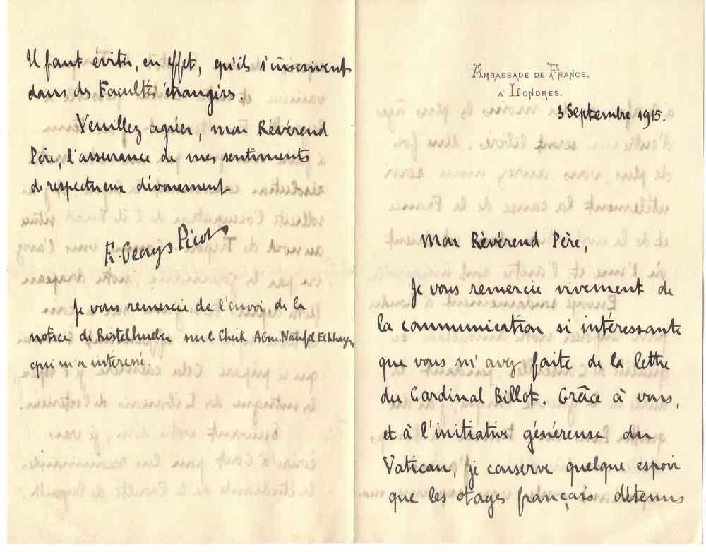 La lettre de Georges Picot au Provincial des Jésuites à Beyrouth.