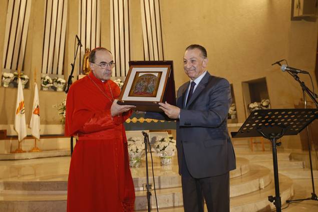 Nagy el-Khoury remettant une icône au cardinal Barbarin,