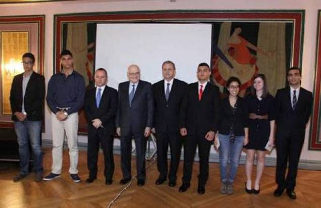 ![]() Les lauréats entourant les ministres Araiji, Jreige et de Freige. Photo Ani |