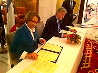 Les discours ont été suivis par la signature du partenariat par M. Pietton et Mme Descôtes. Ils ont ensuite été imités par les représentants des établissements qui n'étaient pas déjà conventionnés.