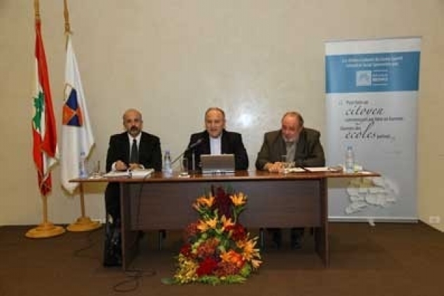 Durant la conférence, Bahjat Rizk, le père Salim Daccache et Melhem Chaoul.