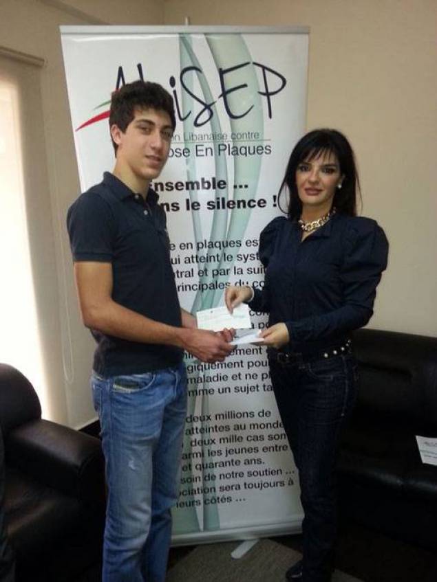 organisateurs d'un superbe « Talent Show » au profit de l'Association. La somme de 5 000 dollars, fruit de leur louable initiative, a été récoltée et remise à Jane Coussa, présidente de l'Alisep (05/04/2014), afin de venir en aide aux malades atteints de sclérose en plaques. Un verre d'honneur dans les locaux de l'Association a été l'occasion de remercier les jeunes bénévoles pour leur engagement dans le social et leur action humanitaire.