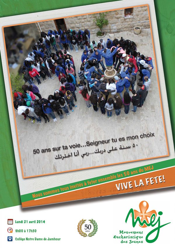 Le Mouvement Eucharistique des Jeunes "MEJ" a le plaisir de vous inviter à sa 50ème fête au Liban sous le thème de :