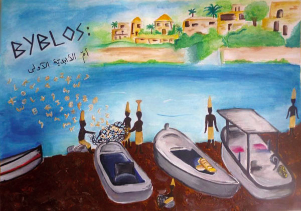 J’ai voulu montrer la place de Byblos dans le monde et dans l’histoire, et comment les phéniciens ont pu inventer quelque chose d’aussi extraordinaire que ce premier alphabet, puis le transmettre au monde. C’est pour cela que mon affiche représente deux phéniciens lâchant des lettres à la mer, pour montrer la diffusion de leur langue, idée que j’ai accentué par le slogan «??? ?????? ... ?? ?????».