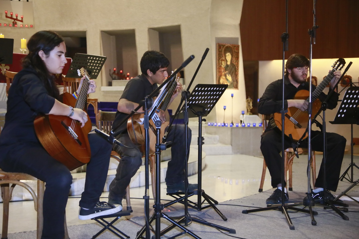 Ces deux premières pièces ont suffi pour que l’audience soit à présent, emportée par ces mélodies envoûtantes, nous laissant ivres de musique, avides d’en recevoir plus, et plus encore. C’est ainsi que la soirée se poursuit sur un même rythme enchanteur avec nos deux talentueux violoncellistes ; Tatiana Kamal et Christopher Feghali qui s’éclatent sur scène en interprétant un Duo pour Violoncelle de Jacques Offenbach. Par la suite, place aux trois guitaristes ; Nadim Ghorayeb, Sarah Yaghi et Nabih Azzi qui exécutent deux pièces de Johann Sébastian Bach, une pièce de Carlos Gradel ainsi qu’une autre de Ferdinando Carulli jouée en duo par Nadim et Nabih.