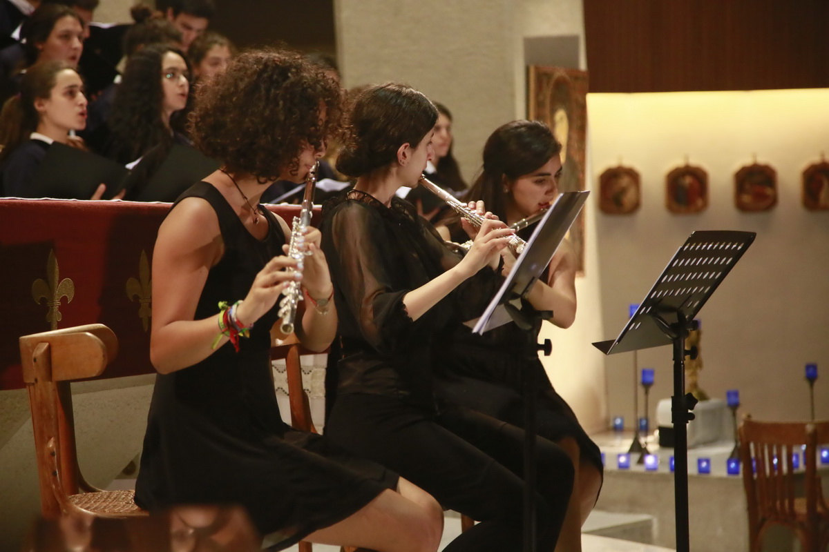 C’est alors que notre cœur se met à chavirer d’abord sur l’harmonie du Hautbois de Gabriel d’Ennio Morricone où Youmna Bouzamel joue, en soliste avancée, de sa flûte traversière. Ensuite c’est au tour du Canon en ré majeur de Johann Pachelbel de nous emporter vers la dernière pièce musicale avant l’entrée de la chorale sous le thème de la liste de Schindler de John Williams brillamment interprété par notre soliste et première violoniste dont nous sommes si fiers ; Clarisse El Khoury. Cette dernière parvient à nous donner des frissons à chaque fois que son archer danse sur son violon.
