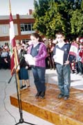 En effet, la joie, l'enthousiasme, l'exaltation et la jubilation étaient au rendez-vous, ce matin du 20 novembre 2001. La Révérende Sœur Préfet et les professeurs se rassemblèrent sur la cour, autour des élèves de 9° et de 8° pour célébrer la fête du drapeau.