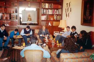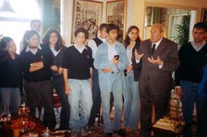 Dans le cadre de l'éducation de l'histoire et du civisme, M. Nehmé, professeur d'histoire-géographie et de civisme libanais en 3e, a organisé une rencontre avec S.E.M. Michel Eddé. Dix élèves de 3e, accompagnés de M. Chidiac, surveillant des classes de 3e, et de M. Nehmé, se sont rendus au domicile de Michel Eddé à Yarzeh, le mardi 12 novembre 2002 à 9h30. M. Michel Eddé nous a reçus chaleureusement et il a entamé la discussion. Il a d'abord insisté sur le rôle important de la culture et de la lecture. Il nous a demandé en outre si nous étudions encore le latin à l'école, et a été déçu quand nous lui avons répondu par la négative. Il nous a parlé ensuite de son importante et célèbre collection de pièces de monnaies anciennes. Il a commencé sa collection très jeune et a su profiter d'occasions de par le monde pour s'approprier des pièces rares. Parmi ces dernières, sept sont uniques au monde. Il nous en a présenté deux, la première est athénienne, et la seconde, hellénistique, a été trouvée dans une amphore en Afghanistan. Il nous a montré aussi deux livres décrivant ses collections.