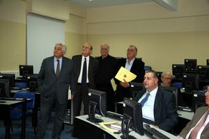 Le Conseil de Gestion du Collège visitant la nouvelle salle d'informatique du secondaire le 30 novembre2005 |