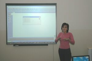 Le TBI, fourni par la société SmartBoard, sert de support à des cours de géographie par exemple : les élèves peuvent faire tourner une mappemonde virtuelle, cliquer sur un pays et répondre alors à une série de questions. Autre application : concevoir des phrases en déplaçant les mots directement à l'écran. Le TBI est aussi utilisé pour les langues étrangères, l'histoire (visualisation 3D de châteaux), la géométrie (manipulation des figures) ou encore les arts plastiques. Pour l'enseignant, l'intérêt est de pouvoir préparer aisément des « tableaux » à l'avance, de les sauvegarder pour reprendre une session plus tard, ou encore de se constituer une banque d'outils, d'images, de sons, réutilisables en quelques clics.