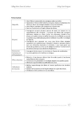 de réussite • Exercice de l’autonomie et de l’esprit critique de la part des élèves.