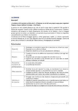 plaisir, elle contribue à la réussite de l’élève danseur, chorégraphe et spectateur.