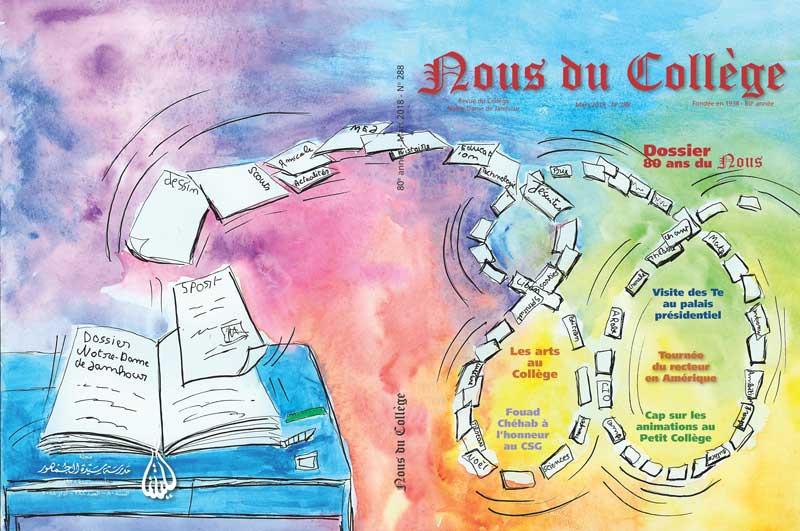 Depuis, le Nous continue de refléter la vie du Collège et de vibrer au rythme de la vie scolaire de ses élèves et de son corps enseignant. Cela fait 80 ans que le Nous du Collège nous accompagne sans cesse dans cette aventure quotidienne qui s’appelle « l’éducation », elle parle des talents et de l’excellence de nos petits et de nos jeunes, elle raconte leurs exploits sportifs et technologiques ; elle leur donne l’espace de s’exprimer par la plume ou le dessin, elle fait écho à la belle musique qu’ils font retentir, elle raconte leur générosité dans le travail social, elle relate les aventures des camps scouts et du MEJ, elle illustre leur vie au Collège et ailleurs par des photos aux multiples couleurs.