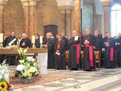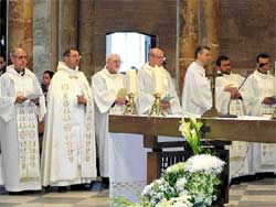 Les évêques présents à la messe et à droite, le nonce apostolique au Liban, Mgr Gabriele Caccia. |