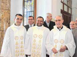 Les pères Nabil Ghaly et Dany Younès, qui ont prononcé les vœux solennels, en compagnie du père Adolfo Nicolás. |