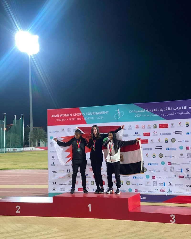 Mayssa a réalisé un doublé au 100 et 200m devant les athlètes du Bahreïn, et à la ½ finale du 100m elle a réalisé 12sec37 avec un vent de face de -0.5 m/s. À la finale, elle a été classée 1re avec un chrono de 12sec24 et un vent de -1.5 m/s. À la demi-finale du 200m, notre championne a réalisé un chrono de 25.52 avec un vent de 0.1 m/s et à la finale elle a remporté la 1re place avec un chrono de 24.72 et un vent à 0.4m/s. Un excellent début de saison pour Mayssa !