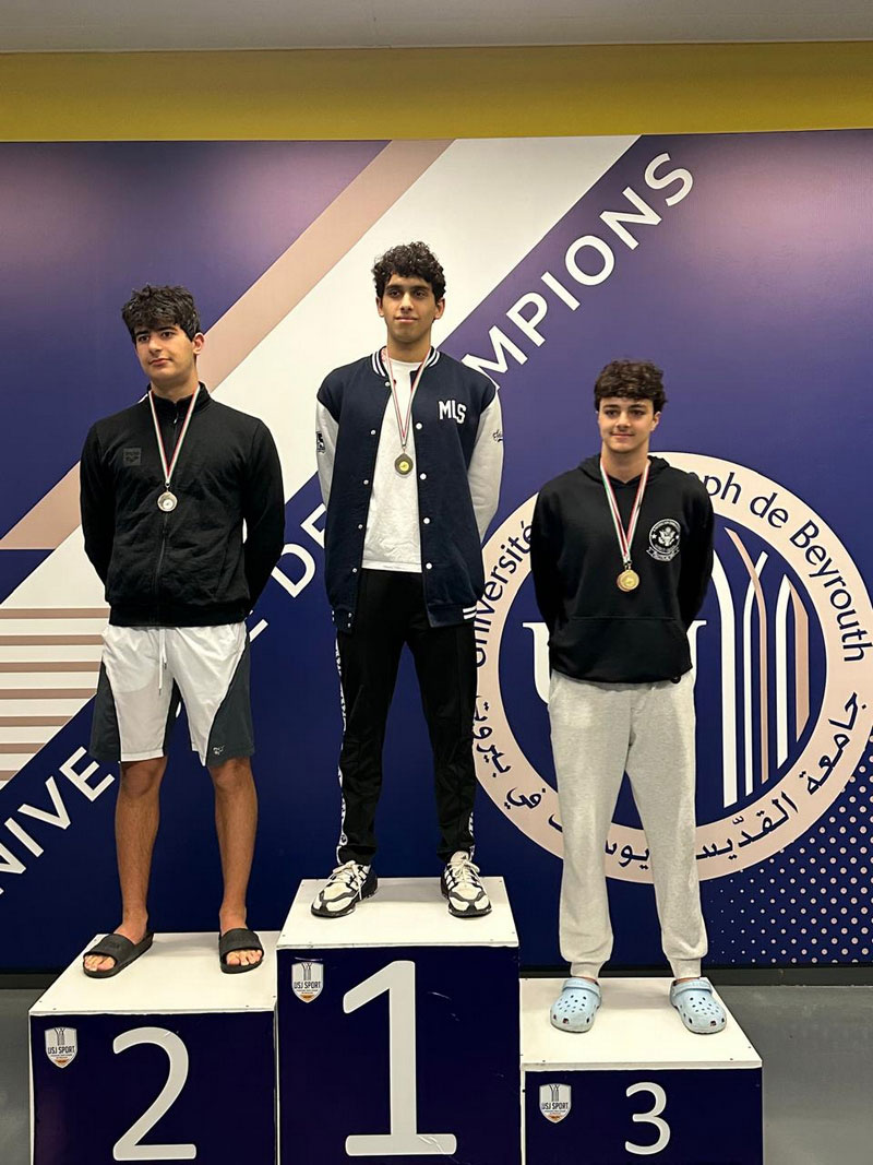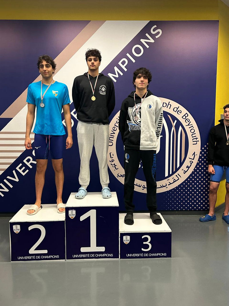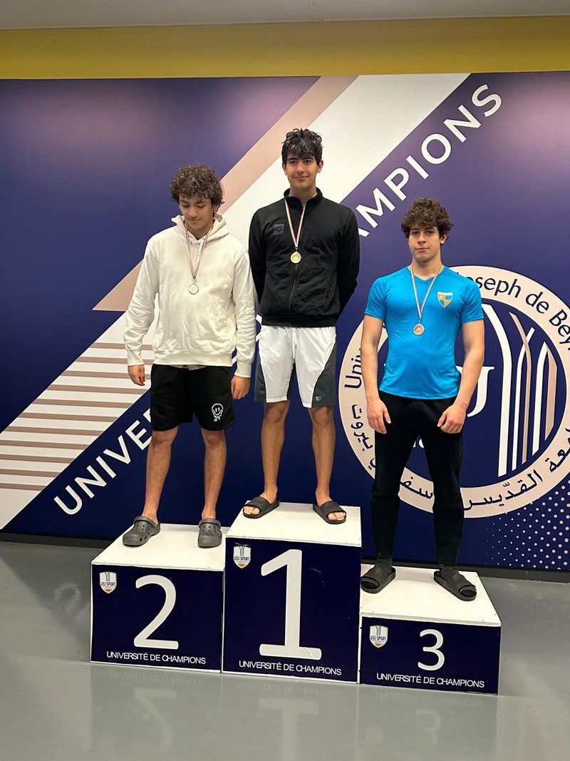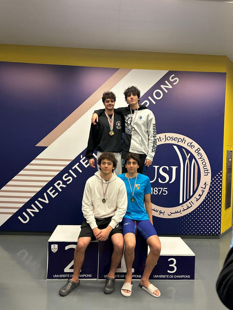 - 5 médailles d’or décernées à : Andrew Ghanem au 50m dos, Lucas Abou Sleiman au 50m dos, aux 2 équipes de relais hommes 4x50m nage libre et 4x50m medley ainsi qu’au relais 4x50m medley dames.