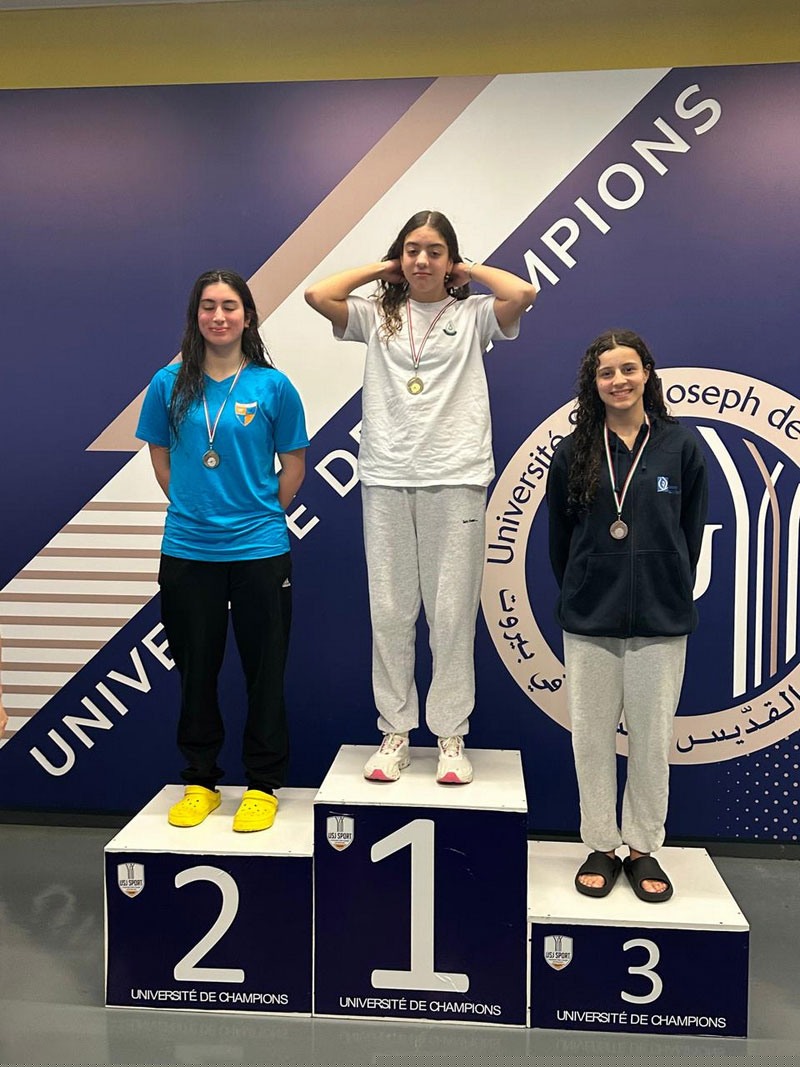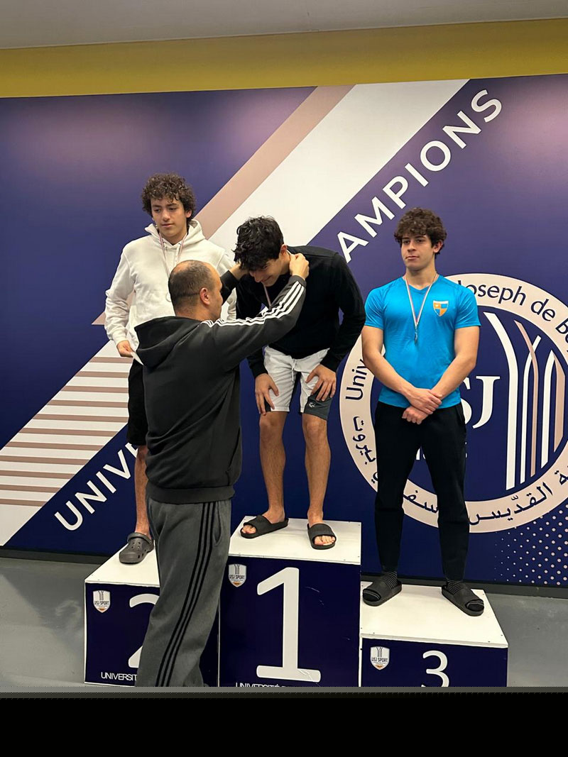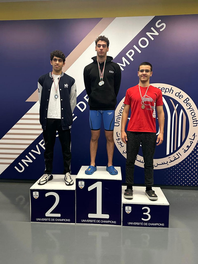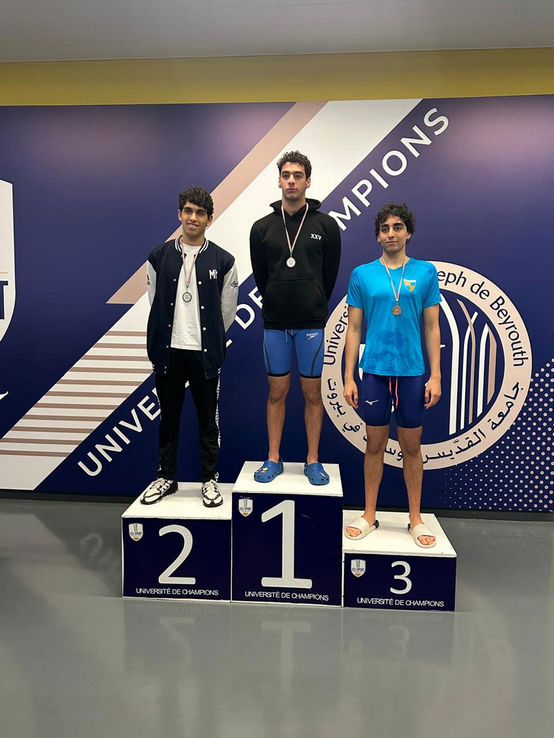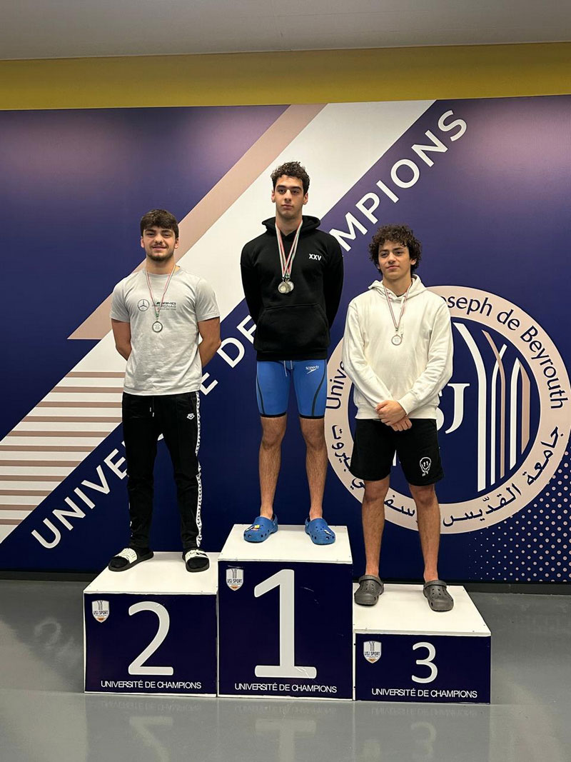 - 5 médailles d’or décernées à : Andrew Ghanem au 50m dos, Lucas Abou Sleiman au 50m dos, aux 2 équipes de relais hommes 4x50m nage libre et 4x50m medley ainsi qu’au relais 4x50m medley dames.