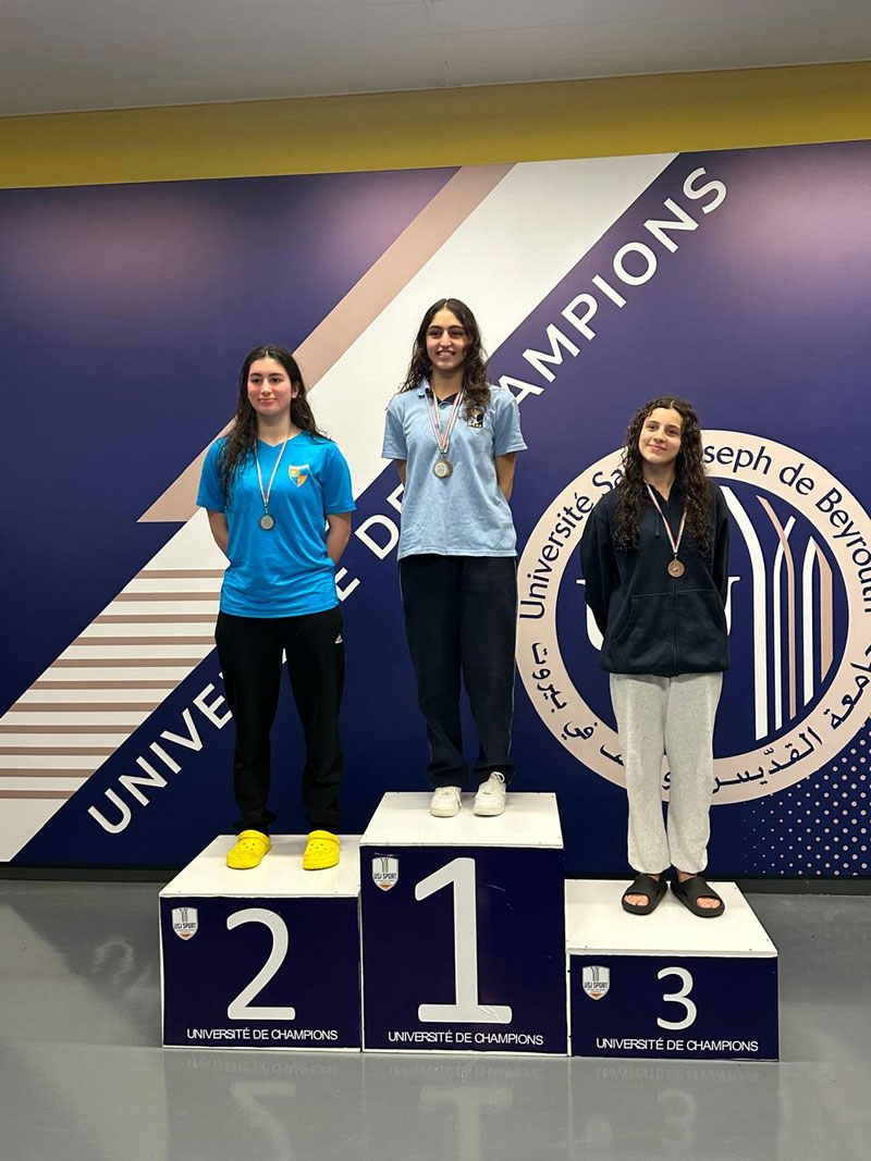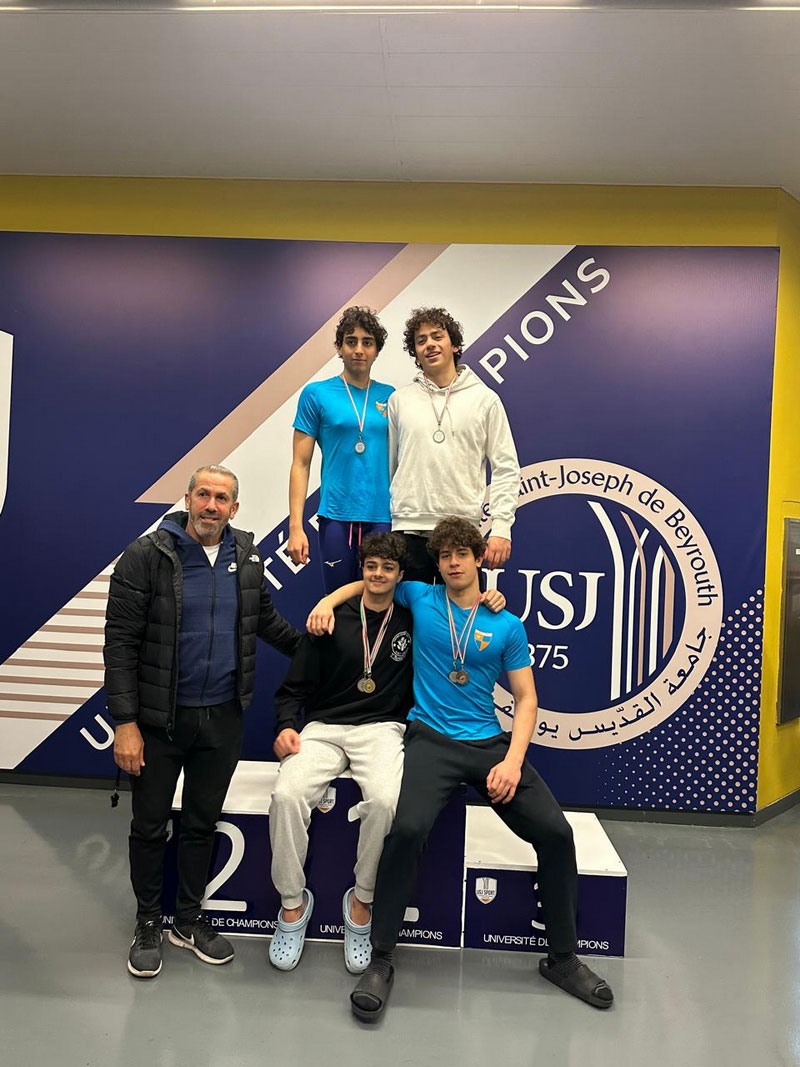 - 6 médailles d’argent remportées par : Adnane Dghaidy au 50m dos, Anthony Abi Abboud au 50m brasse, Lucas Abou Sleiman au 100m medley, Claire Loutfi au 50m dos, Hala Hammoud au 50m brasse et par notre équipe de relais dames 4x50m nage libre.